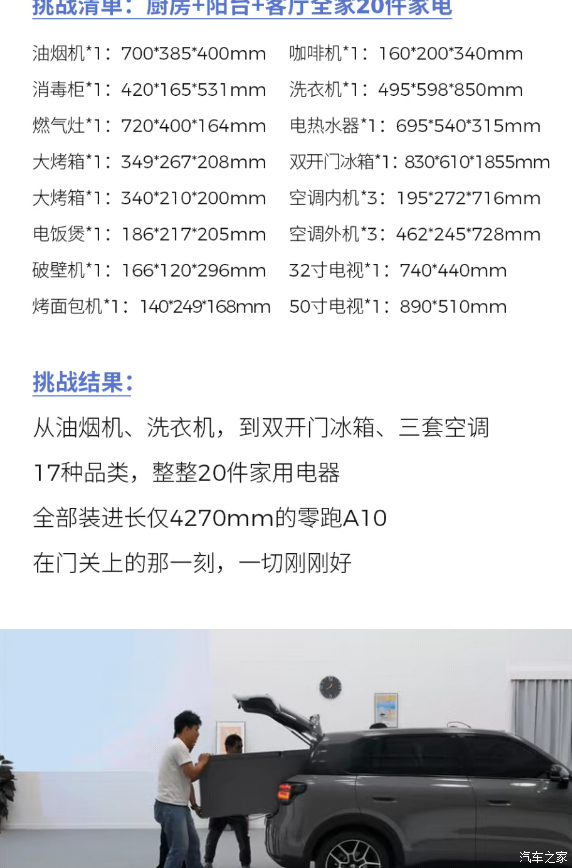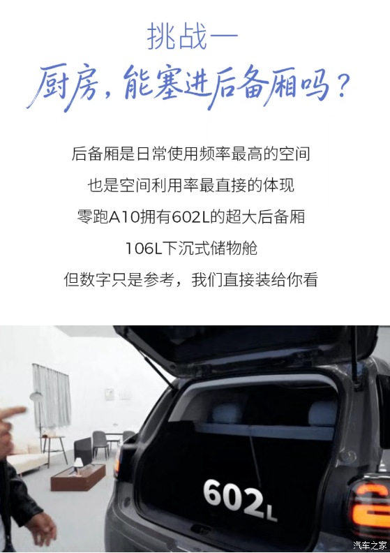 这次,我们换一种方式 用最熟悉的"标尺"家用电器对零跑A10发起一场"空间大挑战" 准备好,一起见证 "空间魔术师"的极限在哪里?