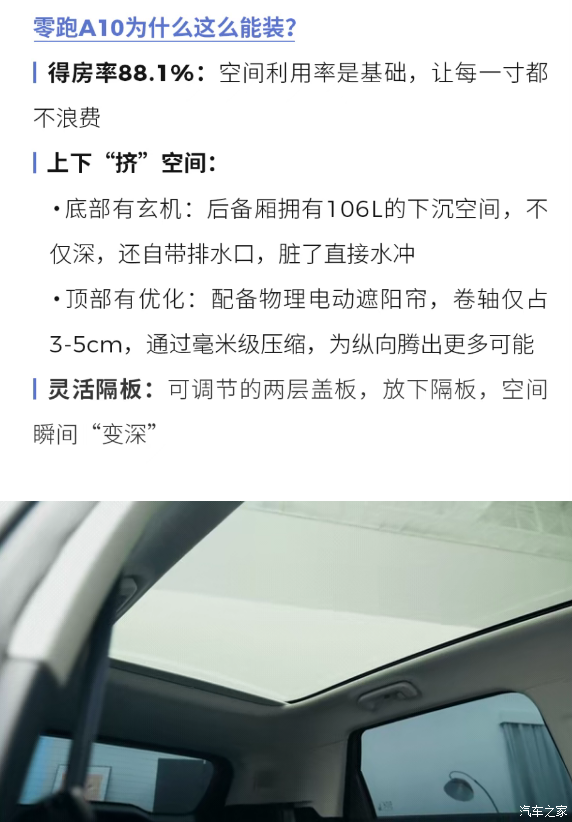 从厨房到阳台,再到客厅零跑A10用三种不同的装载形态 证实了这是一辆空间大得不像十万级的车 零跑A10,智能精品长续航SUV把"家"装进车里,把生活带在路上
