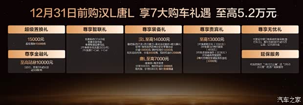 此次,汉L EV共带来3款车型,补贴后售价20.48万~26.48万元;汉L DM 3款车型,补贴后售价19.48万~24.48万元;同时,比亚迪还为用户准备了包含置换补贴在内的至高价值5.2万元尊享礼遇。(以上权益截至12月31日)