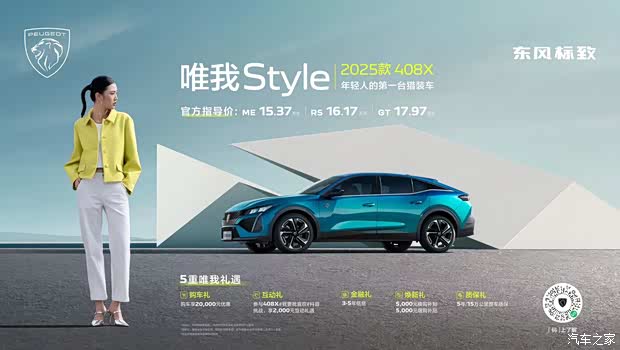 标致审美设计、法式猎装典范、诚意十足的5重唯我礼遇,相信拥有跨界猎装设计、jizhi驾控性能以及唯我精智座舱的2025款408X,一定能为那些心态年轻、忠于自我、颜控和热爱驾驶,有品味、有风格、有态度拥有唯我Style的“有准青年”带来充满动感、时尚法式魅力的品味生活。
