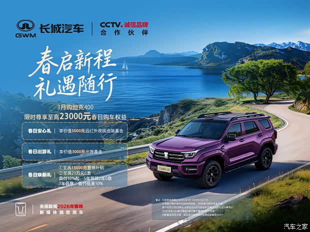 ꔷ 春日保障礼:享价值4000元辅助驾驶保障服务,至高500万级保障(仅全新坦克400 Hi4-T 智享版享受)