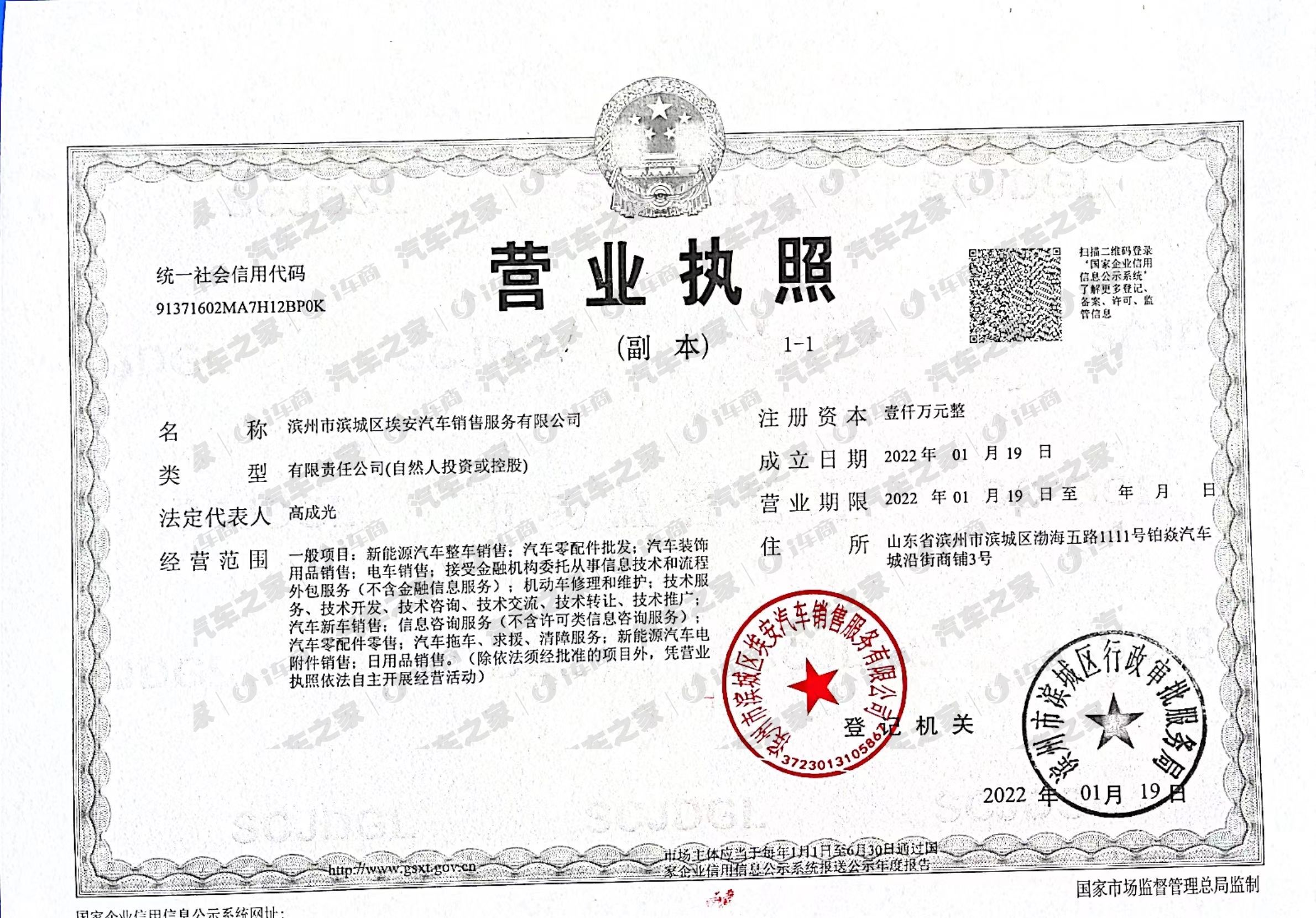 滨州市滨城区埃安汽车销售服务有限公司