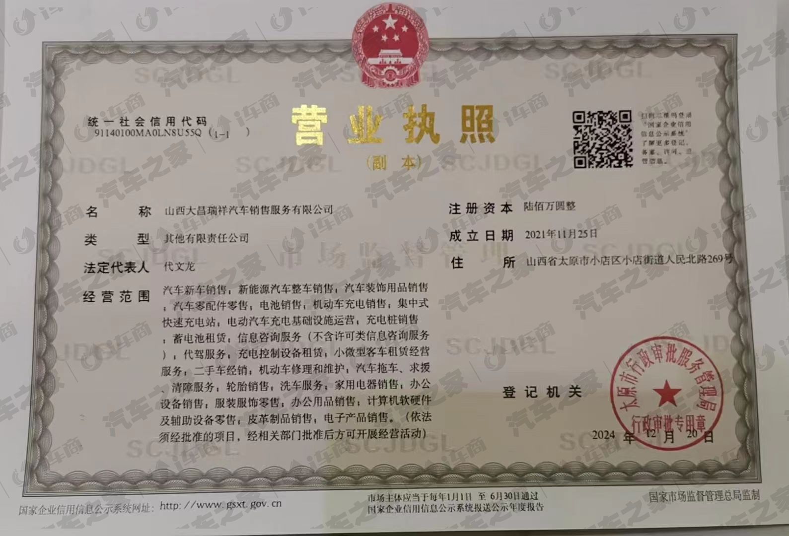 • 名称: 山西大昌瑞祥汽车销售服务有限公司 (是山西大昌汽车集团旗下的一家汽车销售企业)