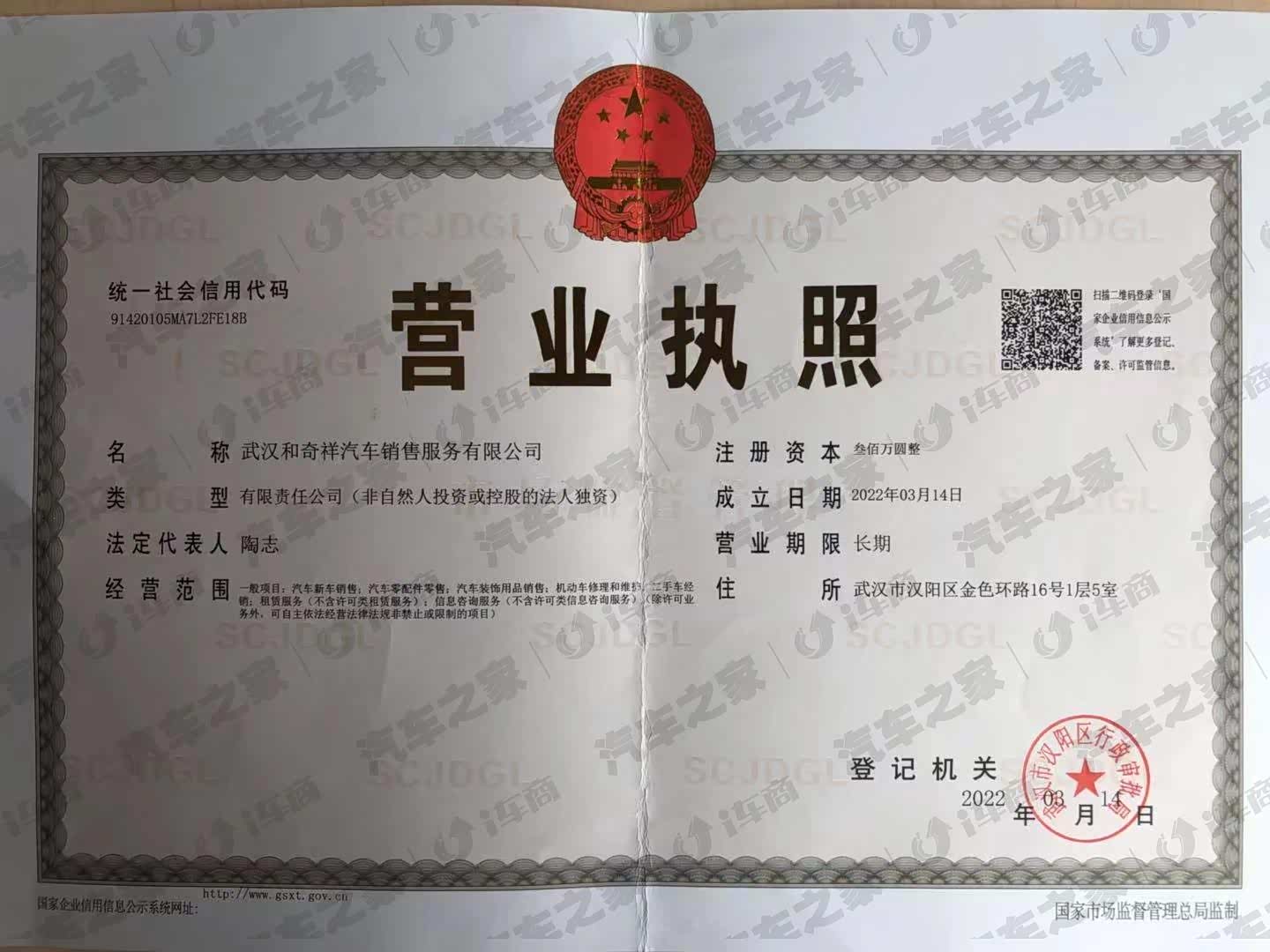 武汉和奇祥汽车销售服务有限公司