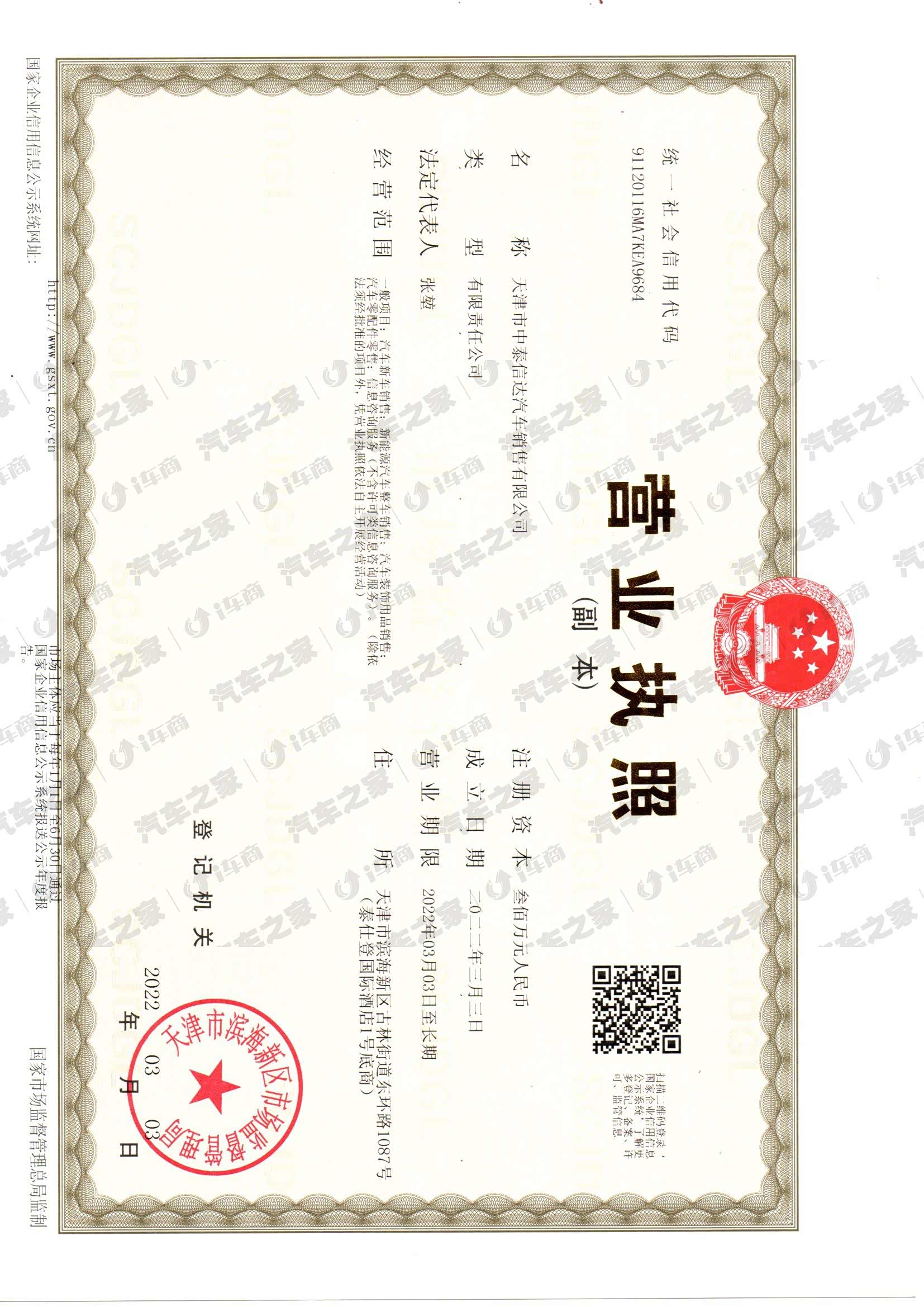 天津市中泰信达汽车销售有限公司