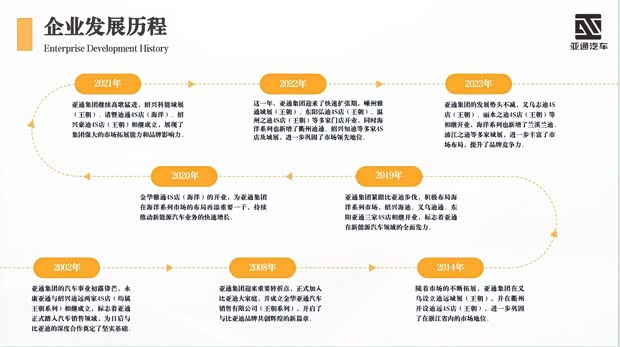 “专业、专注”是亚通汽车集团的生存与发展之本。作为比亚迪汽车在金华、绍兴、衢州、温州、宁波、丽水等地区的授权经销商,集团始终秉持“客户是我们的家人,是永恒的伙伴”的服务理念,为客户提供统一标准的售前、售后服务,致力于实现最高的客户满意度。集团凭借专业的服务团队、先进的硬件设施和科学规范的管理机制,赢得了市场的广泛认可和消费者的信赖“专业、专注”是亚通汽车集团的生存与发展之本。作为比亚迪汽车在金华、绍兴、衢州、温州、宁波、丽水等地区的授权经销商,集团始终秉持“客户是我们的家人,是永恒的伙伴”的服务理念,为客户提供统一标准的售前、售后服务,致力于实现最高的客户满意度。集团凭借专业的服务团队、先进的硬件设施和科学规范的管理机制,赢得了市场的广泛认可和消费者的信赖.