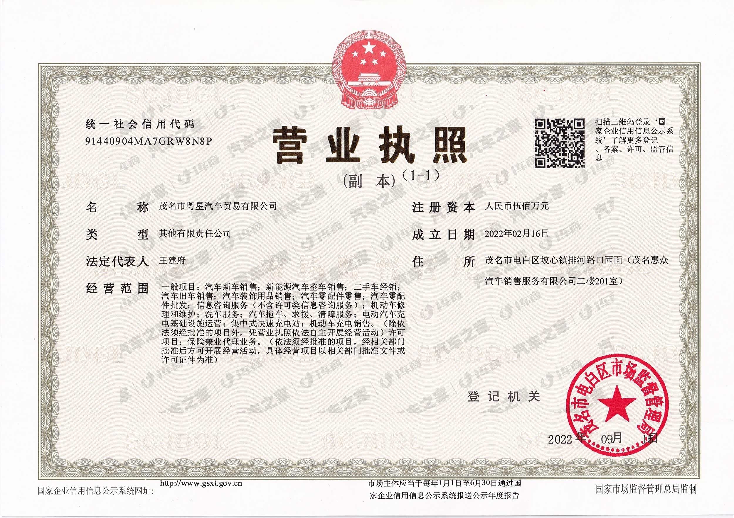 比亚迪海洋网茂名粤星贸易有限公司成立于2022年2月16日。公司位于茂名市高水路G15沈海高速入口向前800米,主营销售比亚迪汽车海洋网系列车型及售后维修服务,是集汽车销售、零配件供应、售后服务、信息咨询为一体的汽车VIP 4S销售服务店。