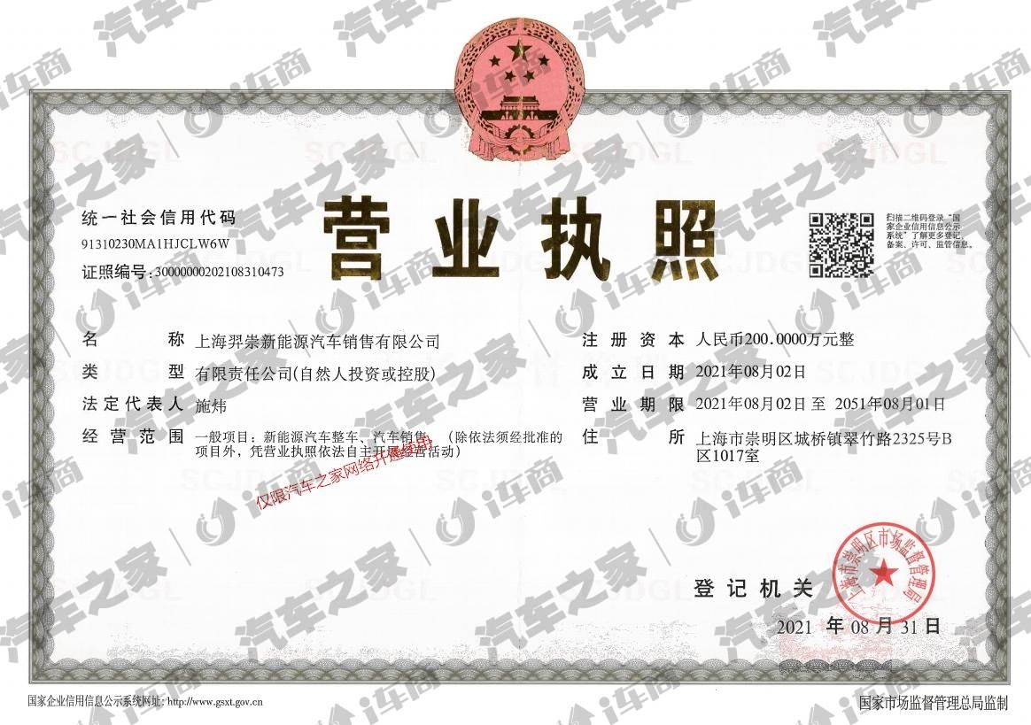 经营范围:新能源汽车整车及零配件销售、机动车修理维护、汽车装饰用品销售、集中式快速充电站运营、小微型客车租赁、技术服务等。