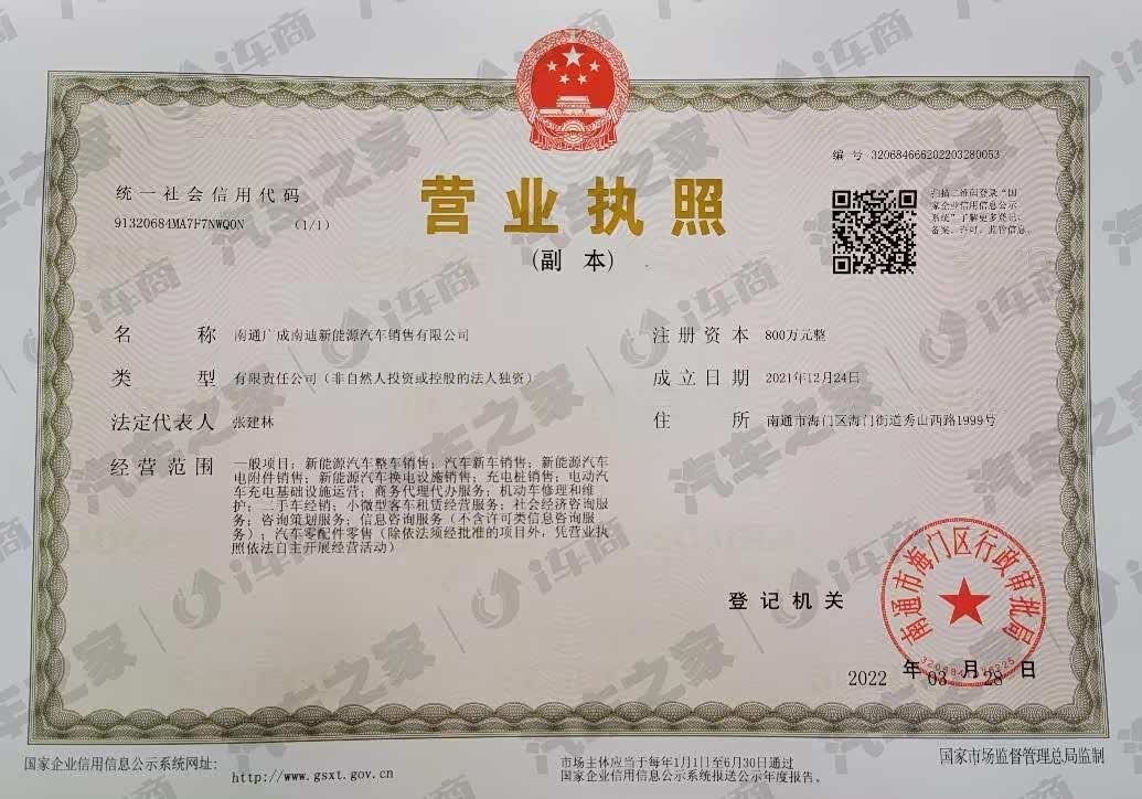 南通广成南迪新能源汽车销售服务有限公司于2022年5月1日正式升级为全新王朝形象店,秉承“以客户为中心,追求广成客户满意度至上”的宗旨,再次昂然起航,欢迎更多朋友加入我们南迪大家庭,一起“向新而行”,成为新时代新能源汽车的领航者。