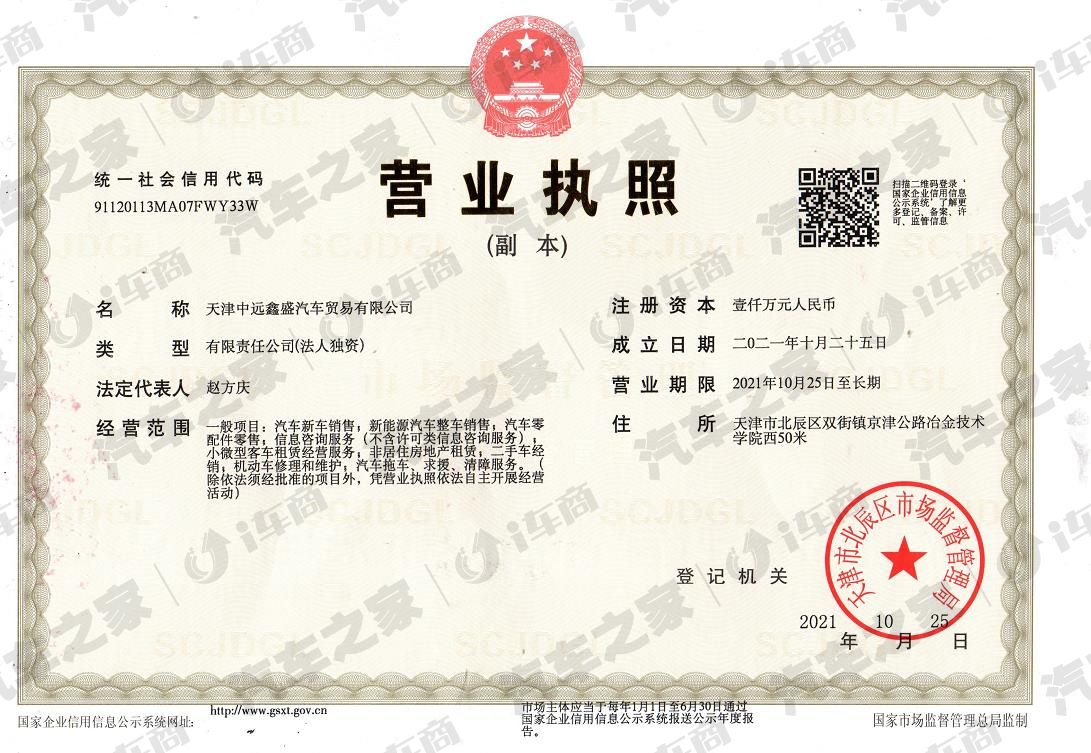 天津市北辰区宜兴埠镇津围公路15号华北汽贸园内中远鑫盛4S店