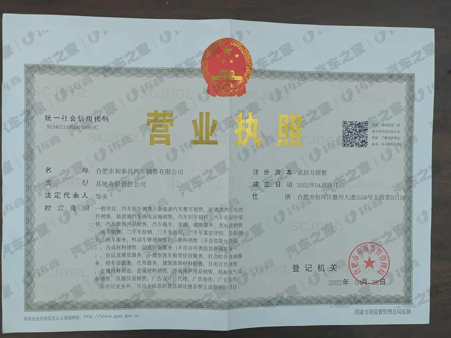 合肥东和泰昌汽车销售有限公司