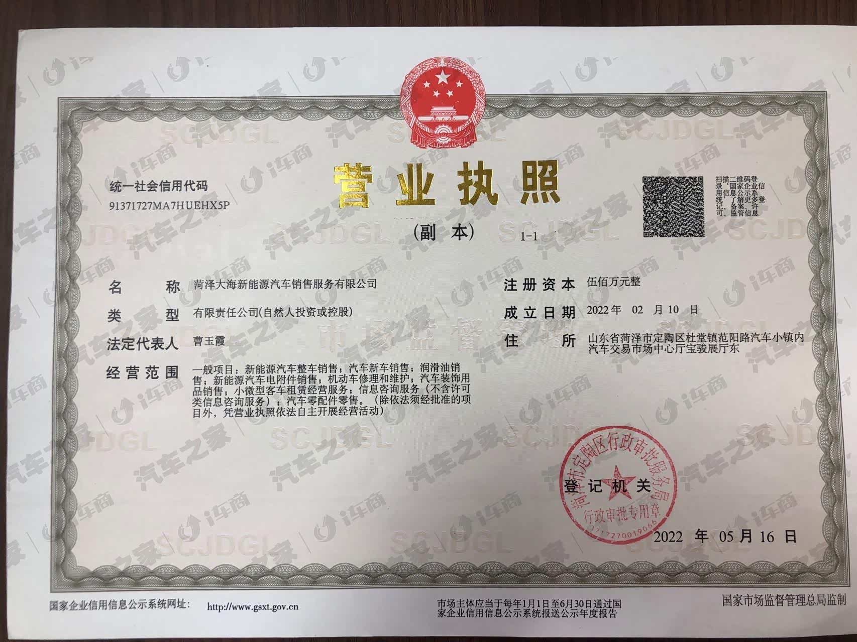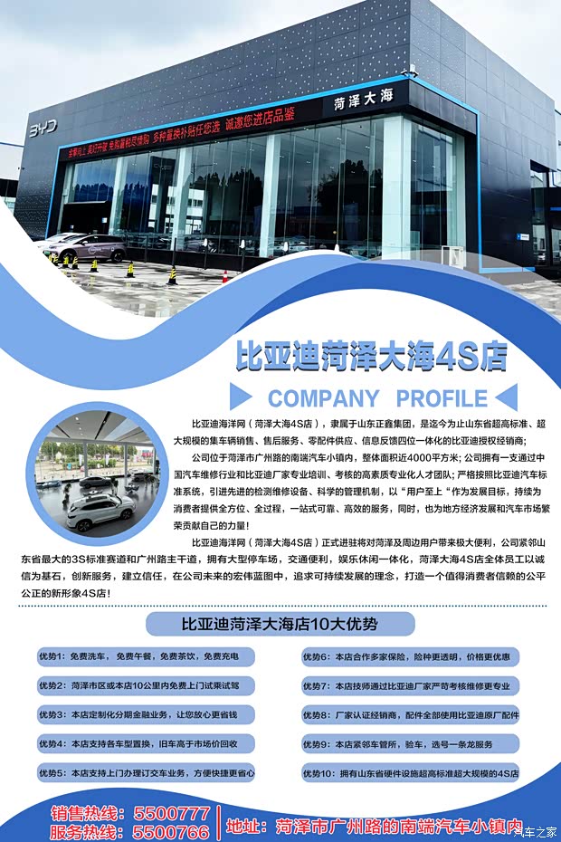 山东省菏泽市定陶区汽车小镇东门200米路南菏泽大海比亚迪4S店(海洋网)