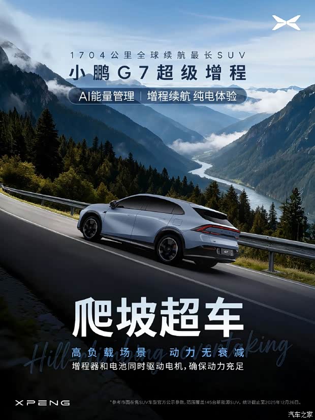 路况在变,用油还是用电?交给小鹏G7超级增程AI能量管理~ 城市通勤,用电更高效;高速巡航,智能增程稳住电量;爬坡加速,油电协同保障动力。 增程续航,纯电体验,让每一种路况都成为当前的最佳工况。