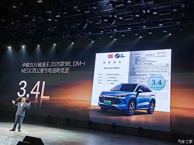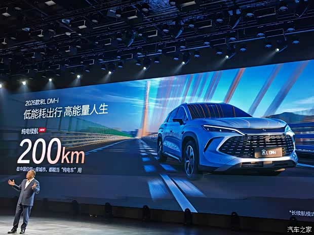 2026款宋L DM-i最大亮点之一,是纯电续航大幅提升至200公里。这意味着对于绝大多数城市通勤用户而言,充电一次可以满足近两周的纯电出行需求,完全可以将它当作一台纯电动车来使用,极大降低了日常用车成本。即便长途出行,其百公里亏电油耗也仅为3.4L,满油满电综合续航高达1630公里,从容应对跨省旅程。