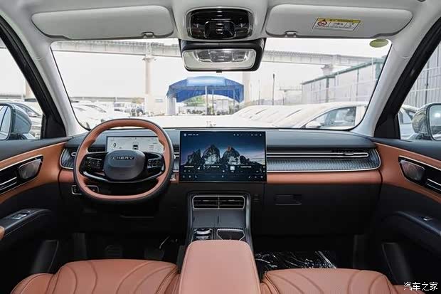 坐进车内,虎款的晨曦山林环抱式座舱营造出舒朗、明亮的氛围。车内配有15.6吋同级2.5k高清电影屏,横屏设计,科技氛围浓厚;豹款的星河丛林灵动式座舱静谧闲适,配有13.2吋同级智能导航屏,奔驰同款的竖屏设计,操作更便捷,学习成本更低,好看实用。
