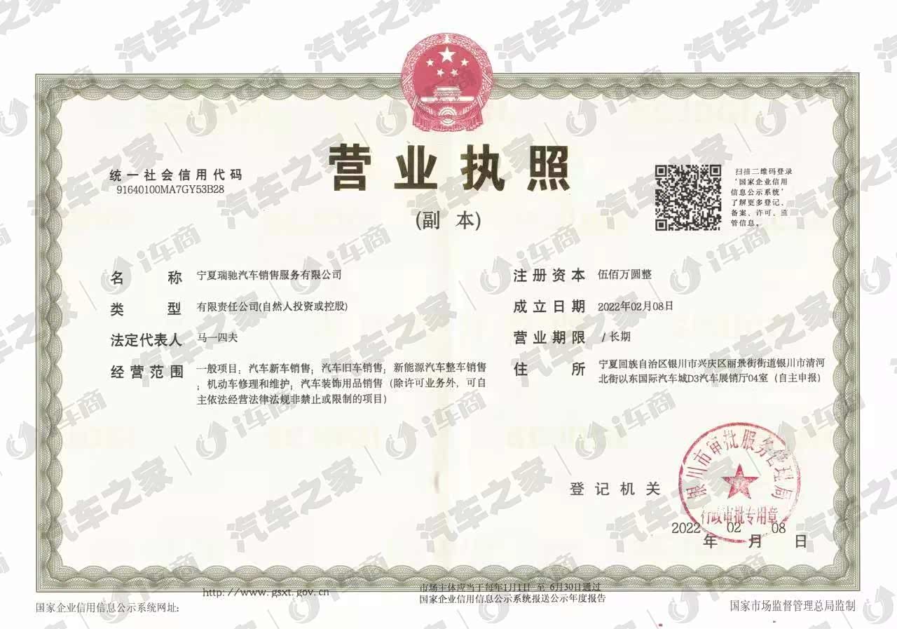 公司简介:宁夏瑞驰汽车销售服务有限公司成立于2022年2月8日,注册资金500万元。位于宁夏银川市兴庆区清河北街国际汽车城D3汽车展厅04室,主营奇瑞车型整机销售,机动车修理和维护,汽车装饰用品销售,公司占地面积1500㎡,公司秉持“诚信为本,用户至上”的经营理念,目前新能源品牌的竞争,不仅是产品质量和销售理念,还要有优质的服务团队。公司目前拥有专业的服务技术团队。公司还将进一步加大服务人员的招聘和技术培训,增强服务团队的建设,在现有基础上,进一步加强一对一特色服务,让客户真正感受到放心、顺心、满意的服务。