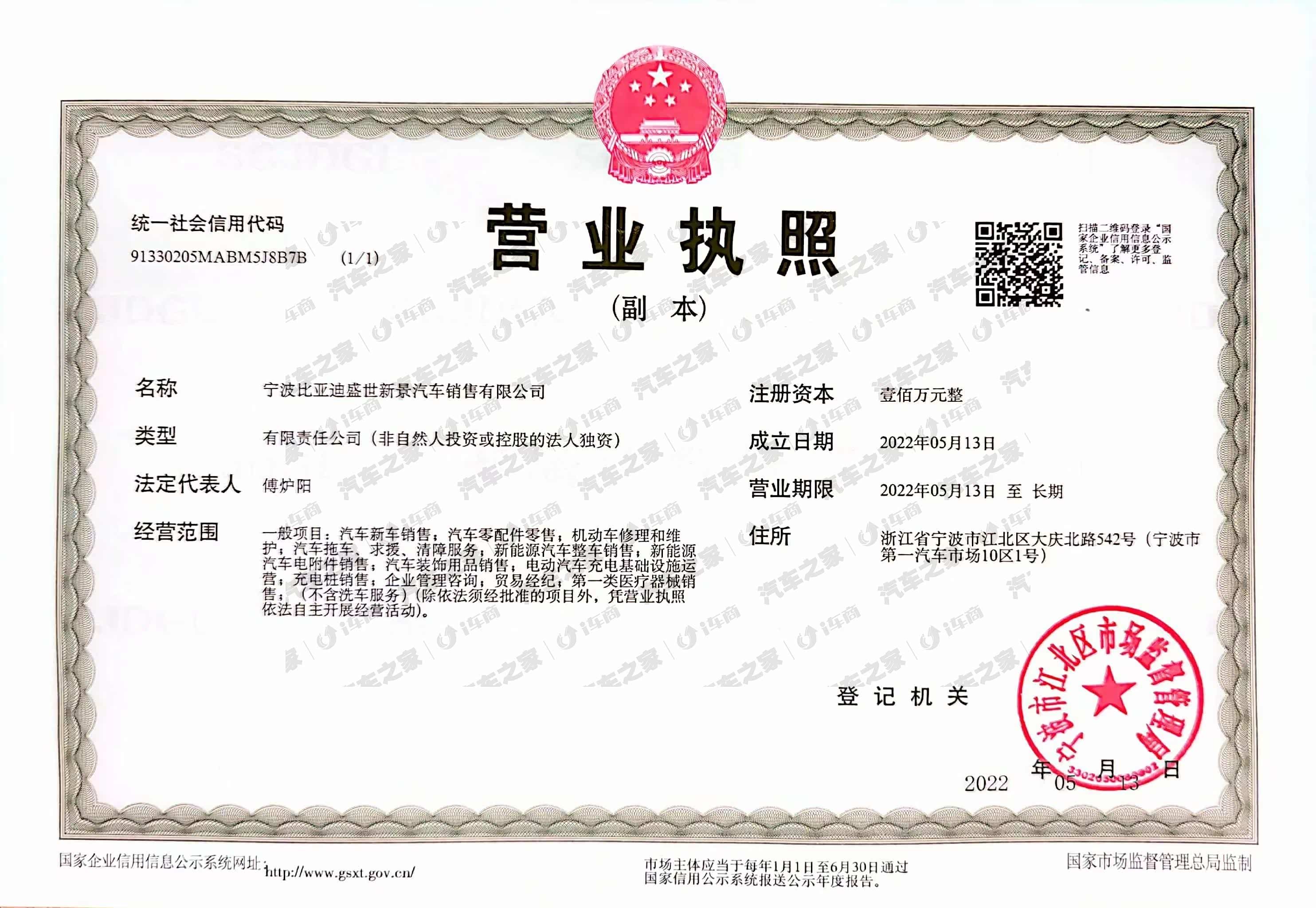 宁波比亚迪盛世新景汽车销售有限公司