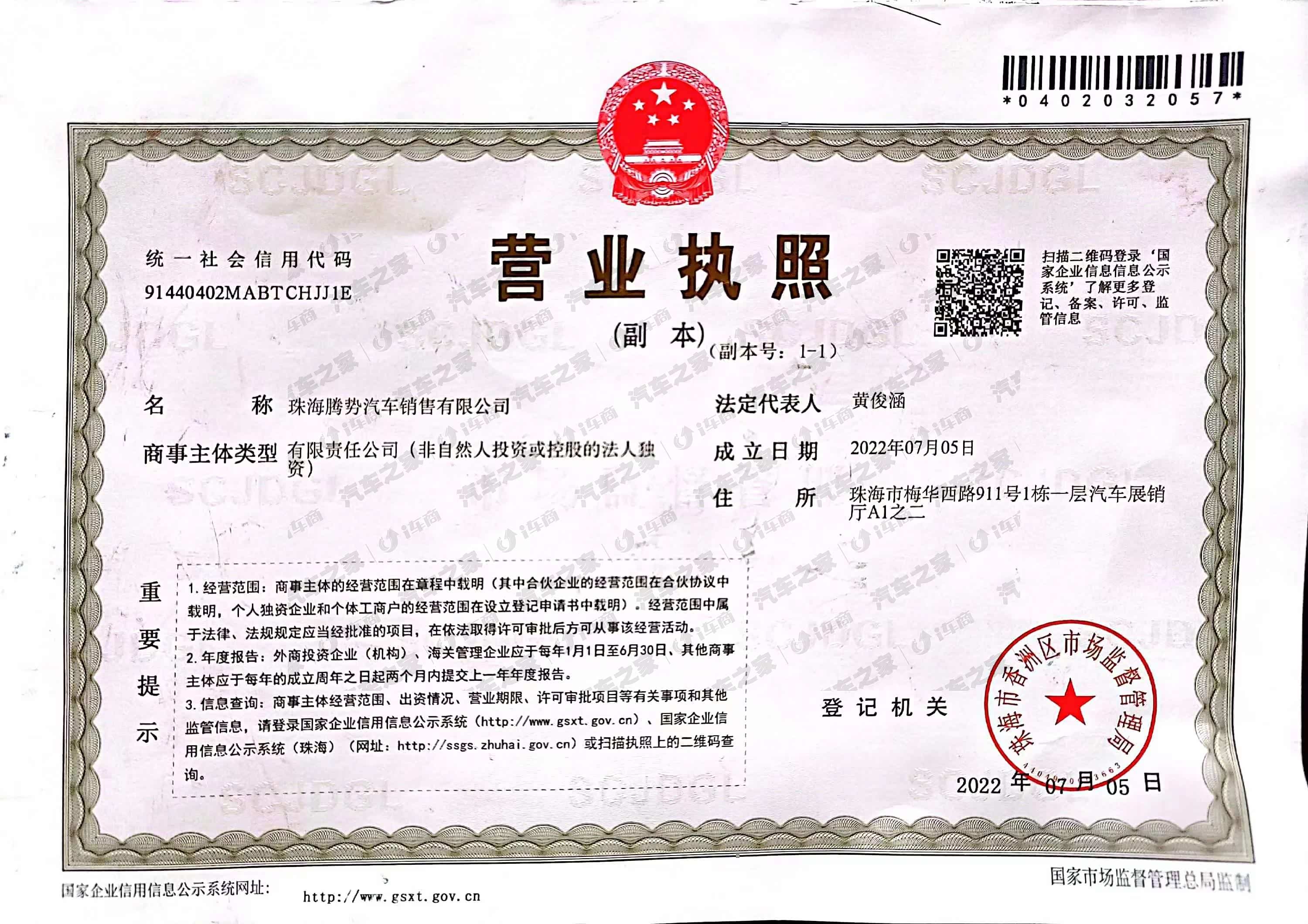 珠海市梅华西路911号1栋一层汽车展销厅A1之二