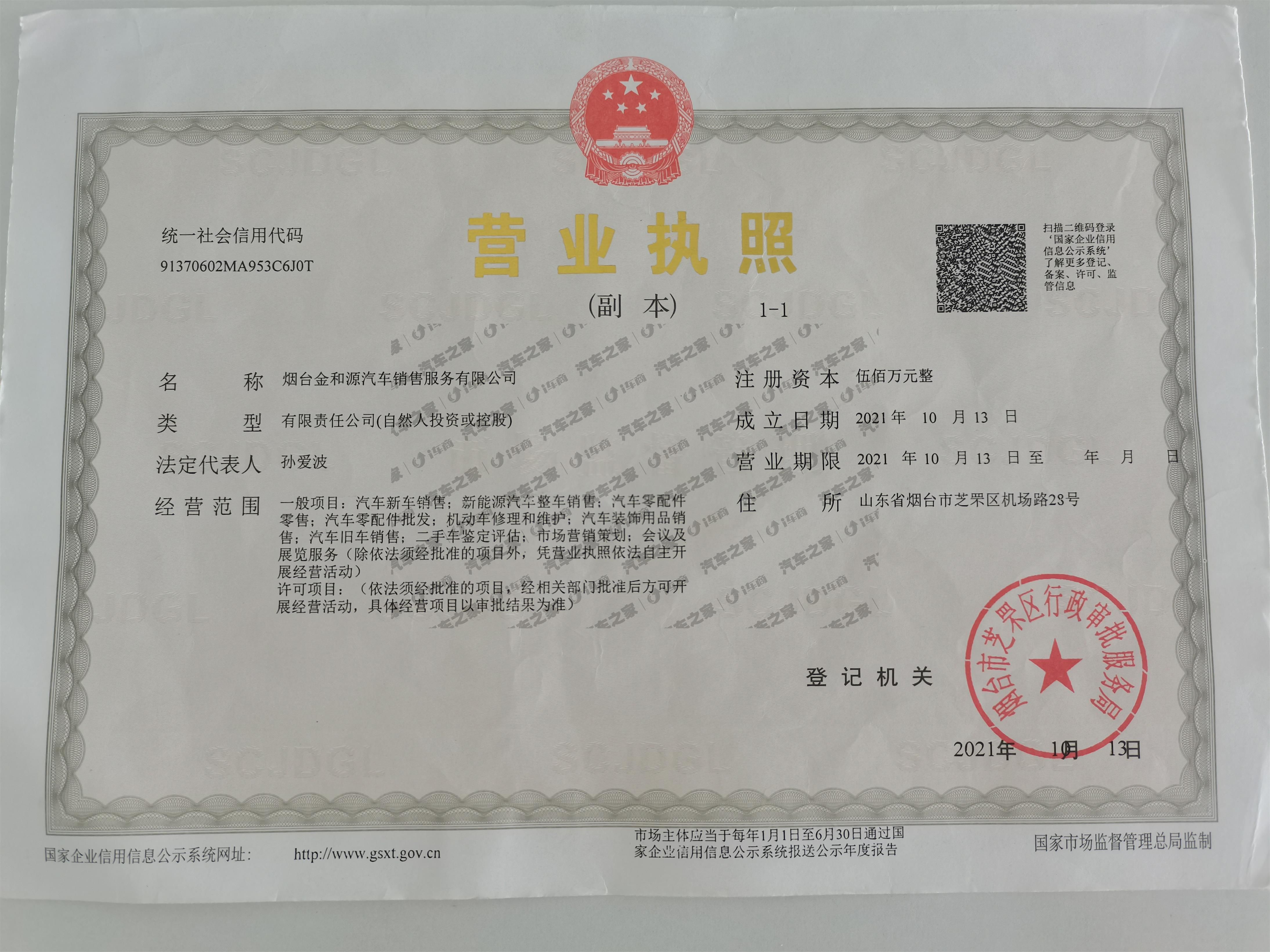 烟台金和源汽车销售服务有限公司成立于2022年6月18日,是吉利控股集团旗下在山东省烟台市唯一的吉利银河体验中心,占地1200平方米。经营中国大众化电动汽车,聚力打造高品价比新能源汽车-吉利银河汽车。拥有A级几何体验中心展厅,为客户提供包括熊猫mini、星愿、星舰7、星耀8等新能源纯电及混动车型。是吉利银河汽车授权集整车销售、备件供应、售后服务、信息反馈四位一体的4S店,能够为广大几何客户提供优质的售前、售中及售后服务。