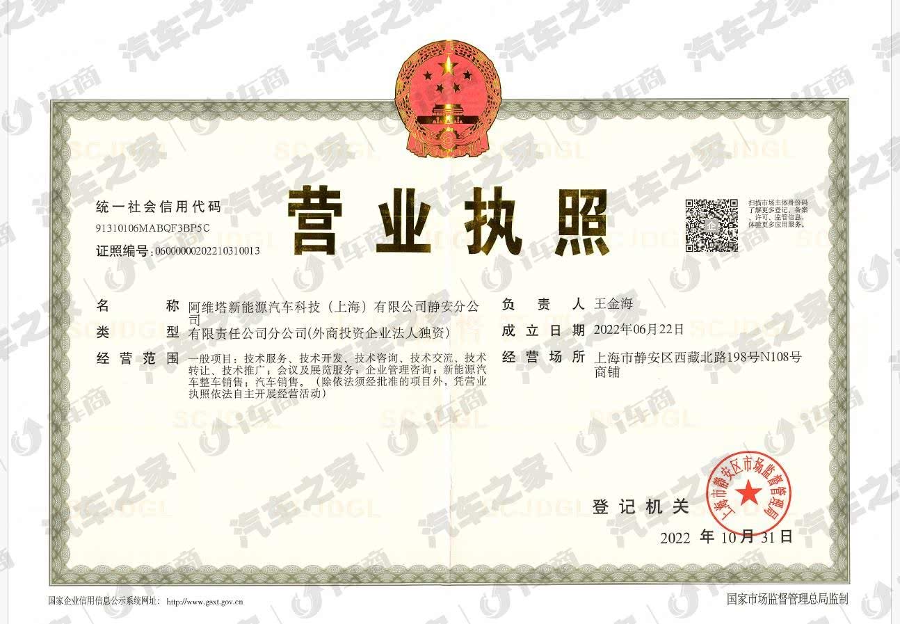 阿维塔新能源汽车科技(上海)有限公司上海静安分公司