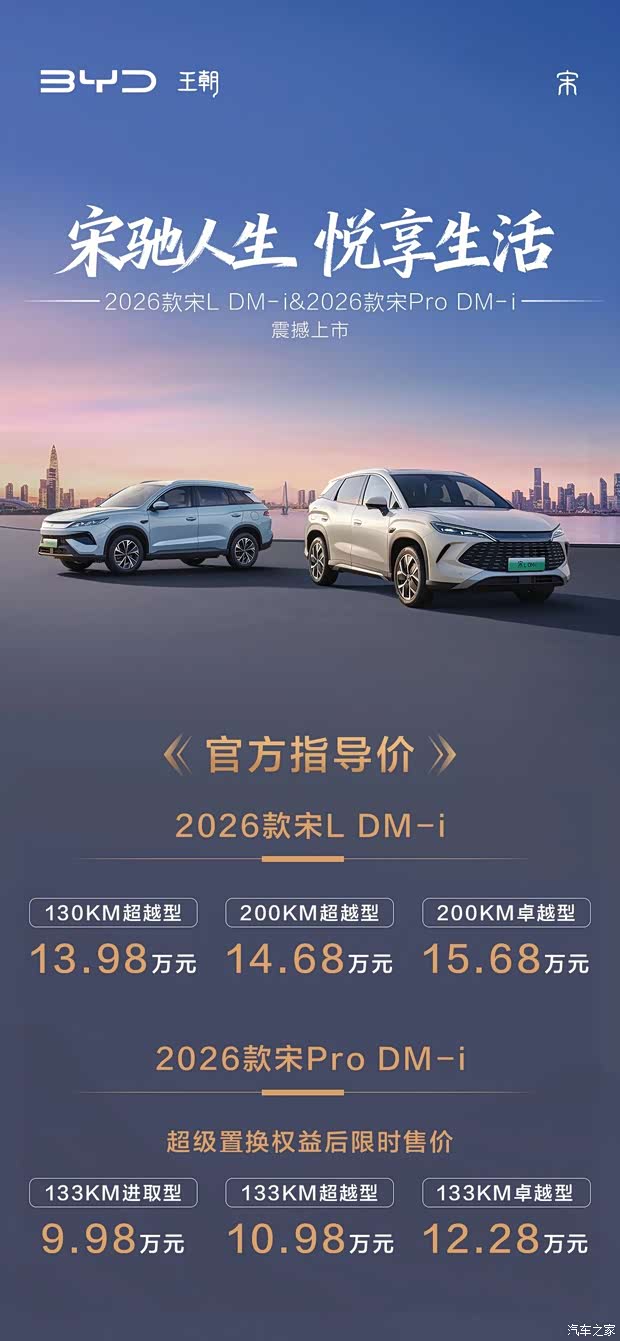 2026款宋L DM-i/宋Pro DM-i上市,限时9.98万元起