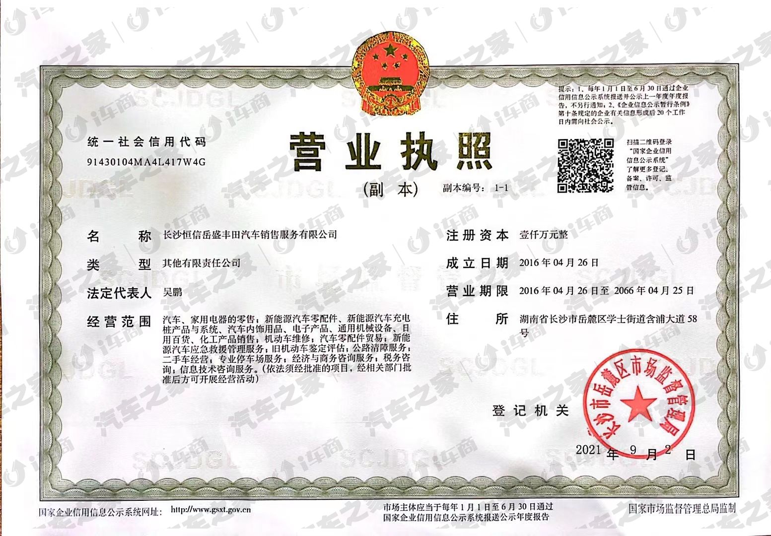长沙恒信岳盛丰田汽车销售服务有限公司经营亚洲龙、卡罗拉、凌放、荣放、卡罗拉锐放、荣放、皇冠陆放、BZ4X纯电SUV、皇冠威尔法、威驰FS、威驰、亚洲狮车型的销售、维修等业务……