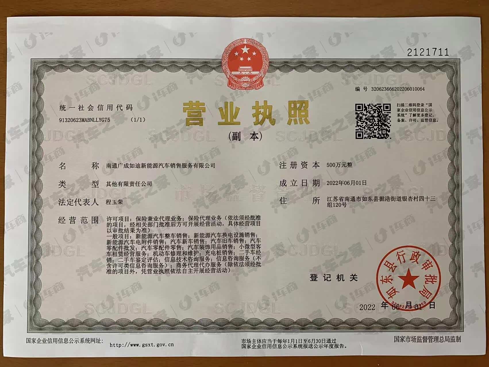 南通广成如迪新能源汽车销售服务有限公司于2022年7月1日正式升级为全新王朝形象店,秉承“以客户为中心,追求广成客户满意度至上”的宗旨,再次昂然起航,欢迎更多朋友加入我们如迪大家庭,一起“向新而行”,成为新时代新能源汽车的领航者。