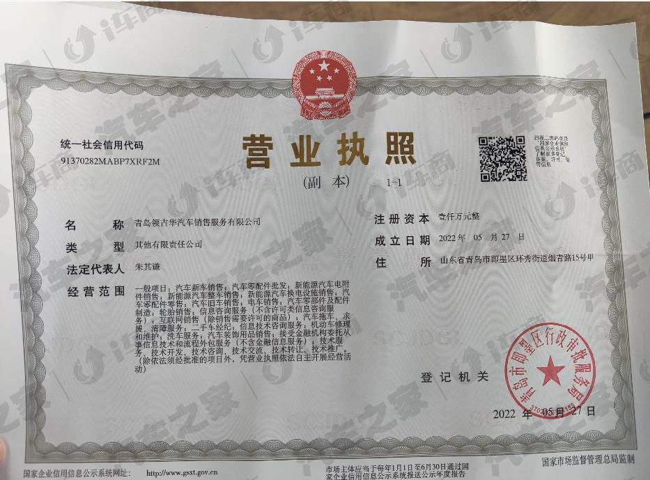 青岛领吉华领克中心,位于青岛市即墨区烟青路15号甲(城阳与即墨交界处,红领广场北),是吉利控股集团旗下领吉商贸有限公司所属一级 4S 店。青岛领吉华领克中心秉承“生而全球,开放互联”品牌定位,为您提供沉浸式汽车销售、维修、装潢、二手车置换,配件供应等多种服务。本公司占地面积4500平方米,其中展厅1200平方米,维修车间 1800平方米、配件仓库900米,为您提供舒适的购车、维修、保养、改装等体验环境。更拥有进口及厂家配备之综合性能检测仪、车身校正仪、四轮定位仪、喷涂车间等设备。以雄厚实力,保障设备与技术赋能,能为您的爱车迅速、准确、有效的服务提供可靠的保证。