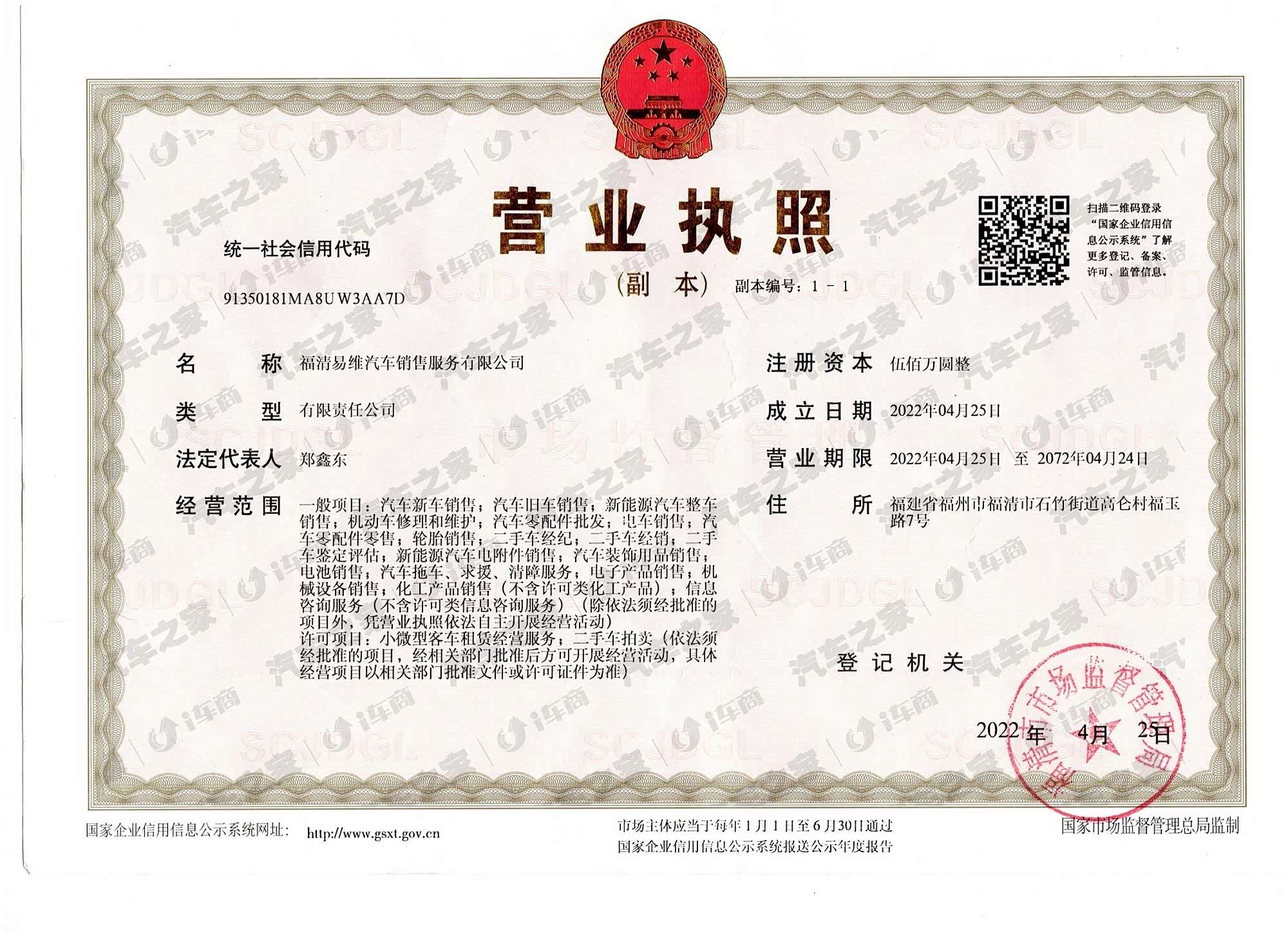 福清易维汽车销售服务有限公司