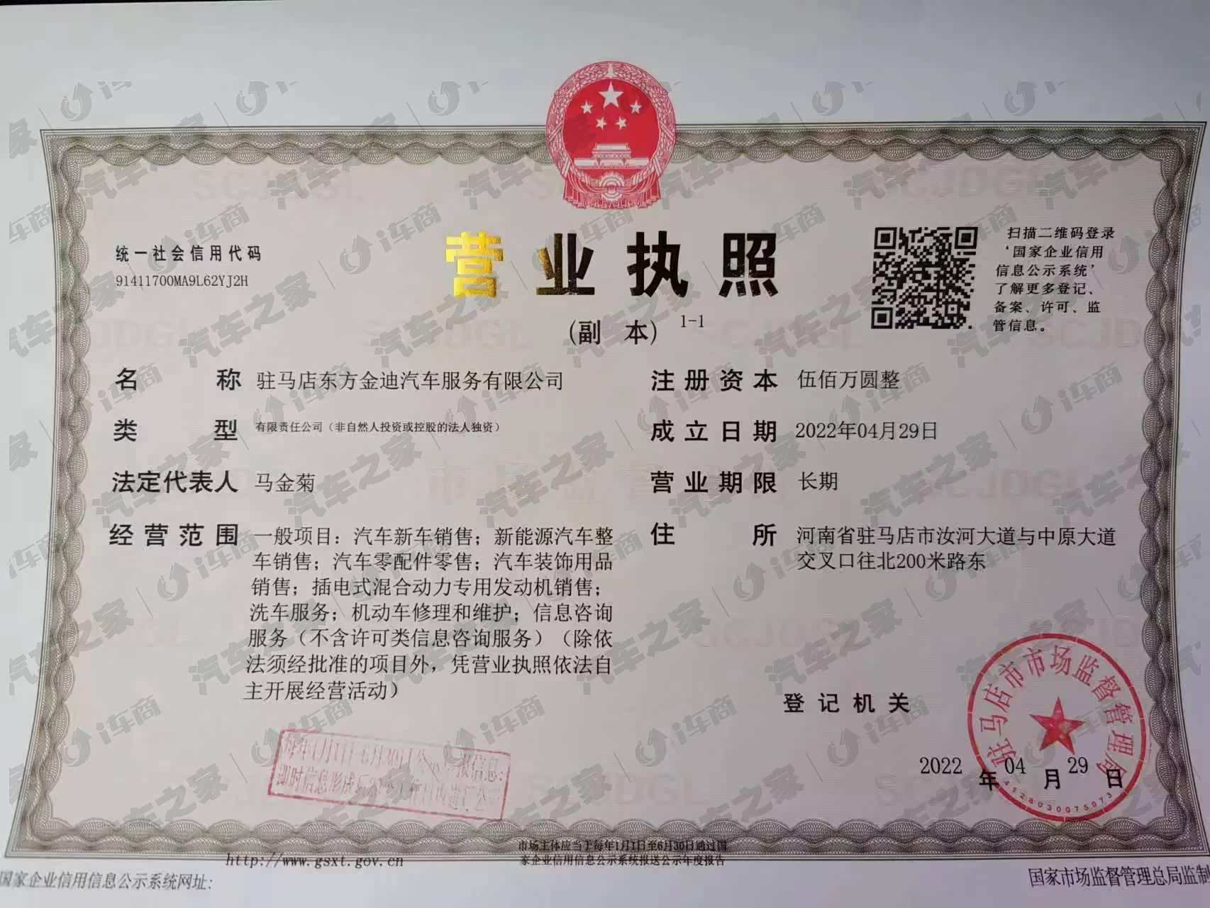 驻马店东方金迪汽车销售有限公司