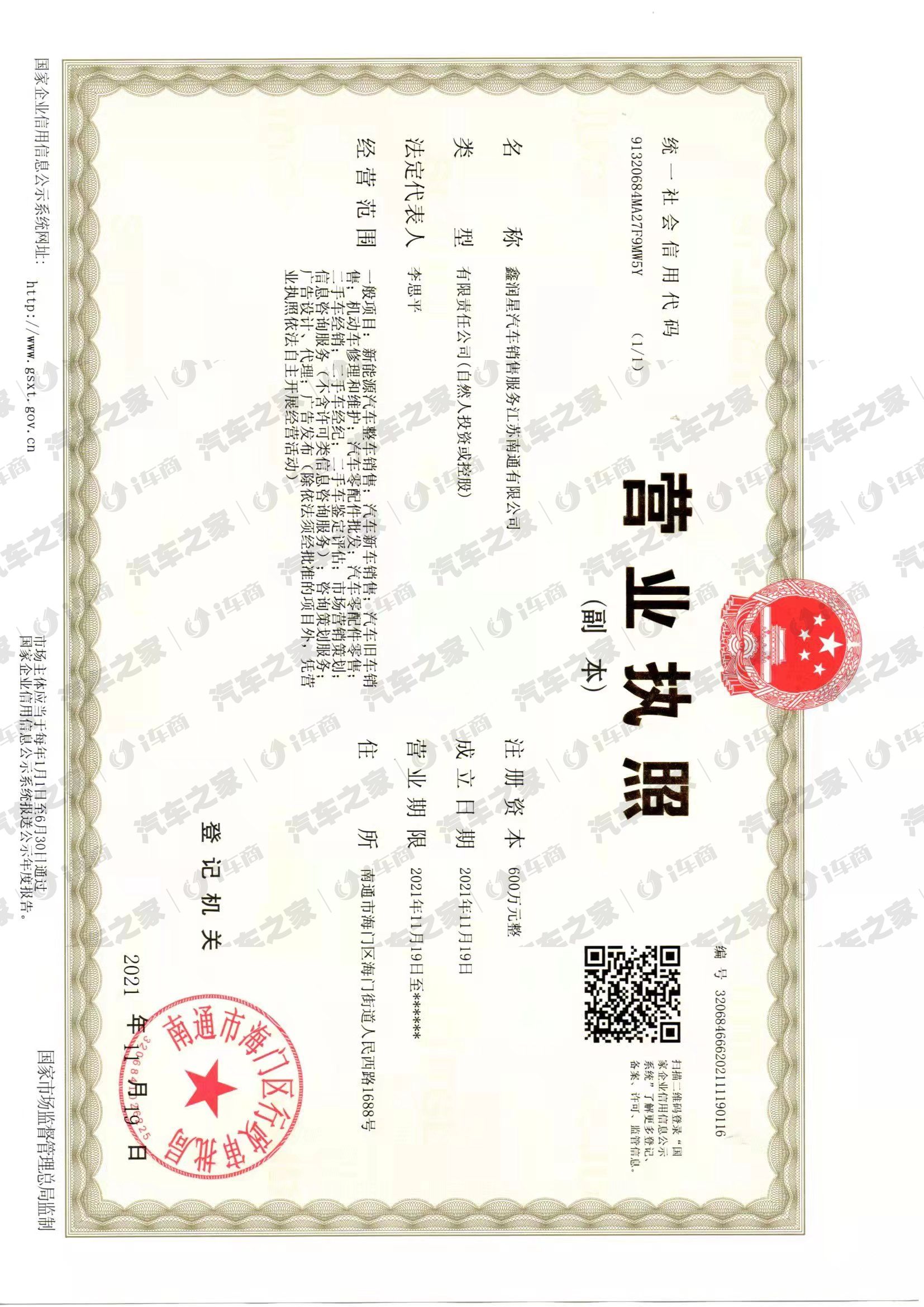 鑫润星汽车销售服务江苏南通有限公司