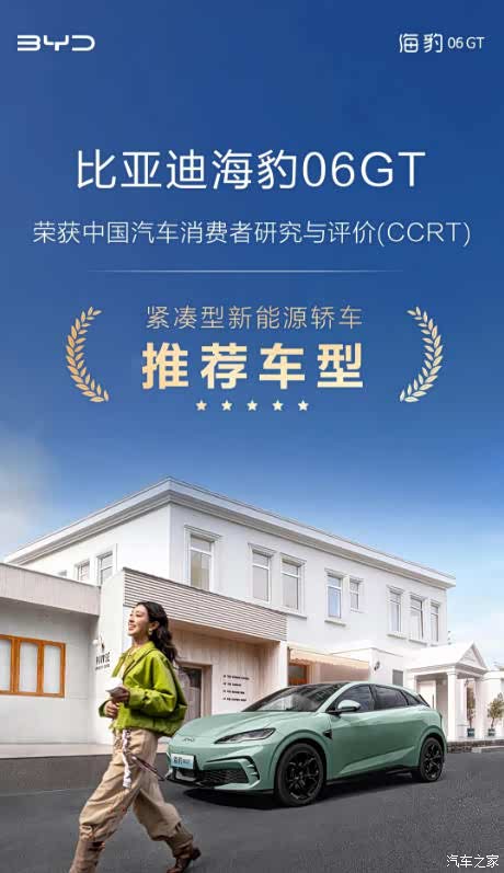 此次荣获CCRT推荐车型,是对海豹06GT产品实力的高度认可。在多项核心技术的全面赋能下,它正以全能的实力重新定义“年轻人的第一台GT”价值标杆,为用户带来超越期待的用车体验。未来,海豹06GT将坚守“用户为先”的初心,以持续进化的智能体验与始终可靠的卓越品质,成为更多年轻用户的信赖之选。
