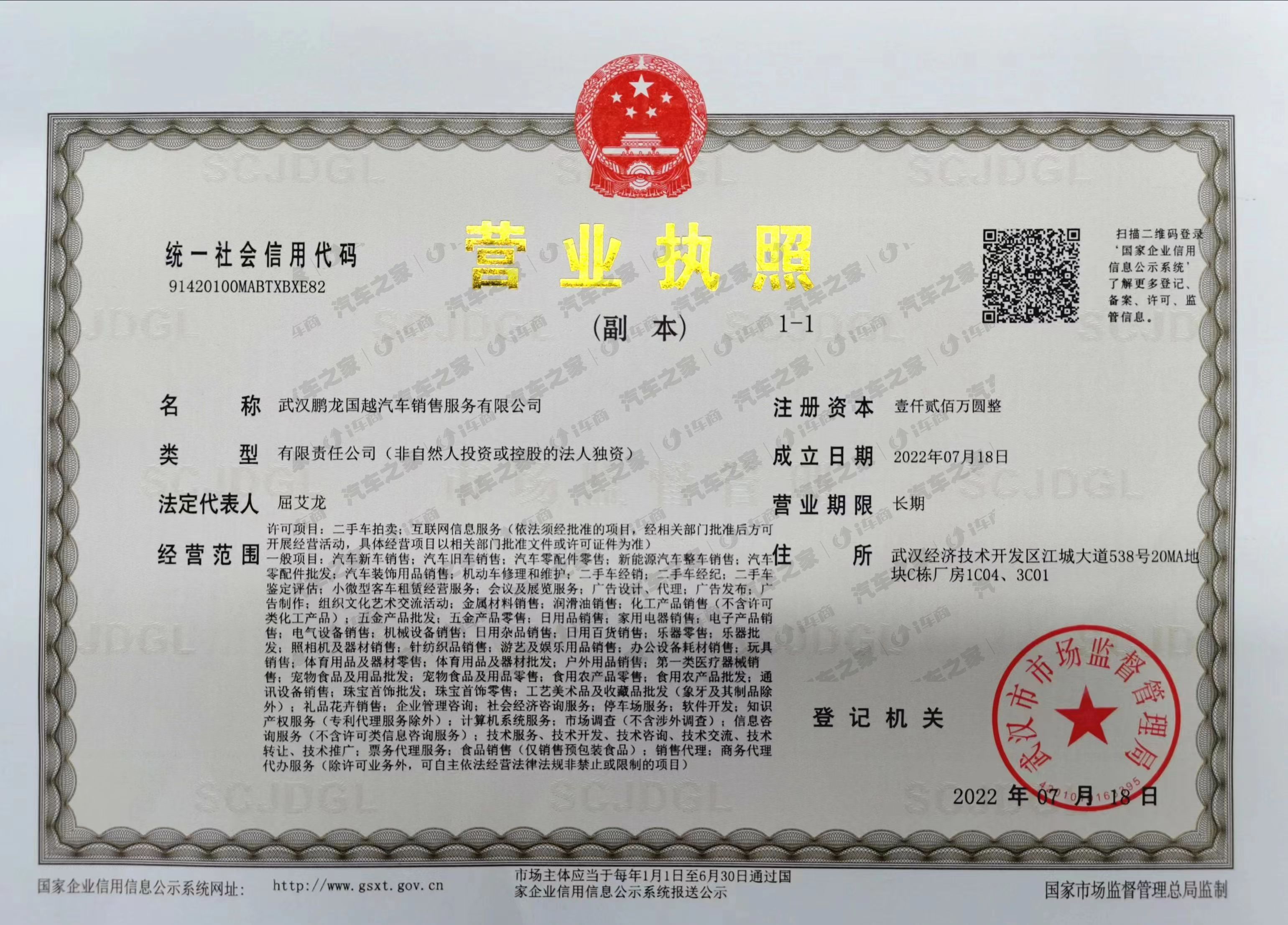 武汉鹏龙国越汽车销售服务有限公司