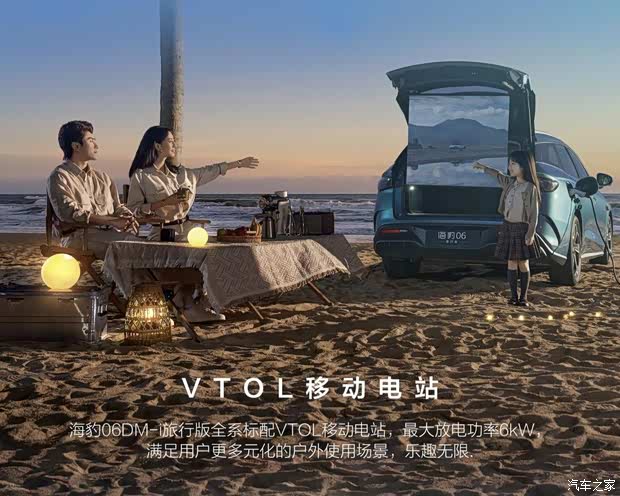 比亚迪车型搭载VTOL移动电站功能,对外放电功率满足户外用电需求。自驾露营时,可外接电火锅、烧烤架、咖啡机、氛围灯等设备,轻松实现野外煮茶、野餐、露天影音,把精致生活带到春光里。