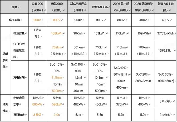 性能与智能驾驶层面,焕新极氪009将搭载全栈900V高压架构,电机总功率提升至680kW,折合925匹马力,动力性能超越多款高性能超跑。900V高压平台的全面应用,不仅为新车带来毫秒级动力响应与极致精准的操控体验,更实现了更高的安全冗余与更低的能耗表现,全方位刷新豪华纯电 MPV 的性能上限。
