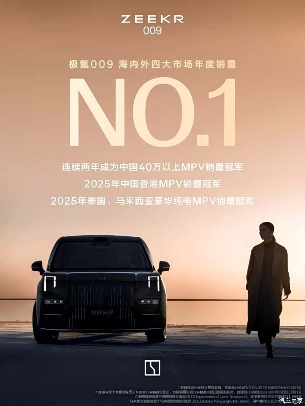 目前,极氪009已经连续两年斩获中国40万以上 MPV销量王,2025年同时也超越埃尔法成为中国香港MPV销量王、泰国和马来西亚豪华纯电MPV销量王,更登顶中汽协纯电动 MPV 保值率 TOP1,用全球口碑与市场成绩,印证当之无愧的豪华MPV地位。
