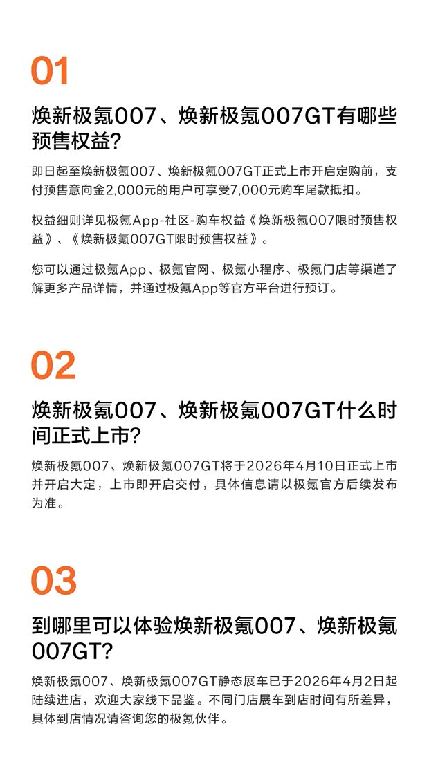 极氪焕新007系列答网友问