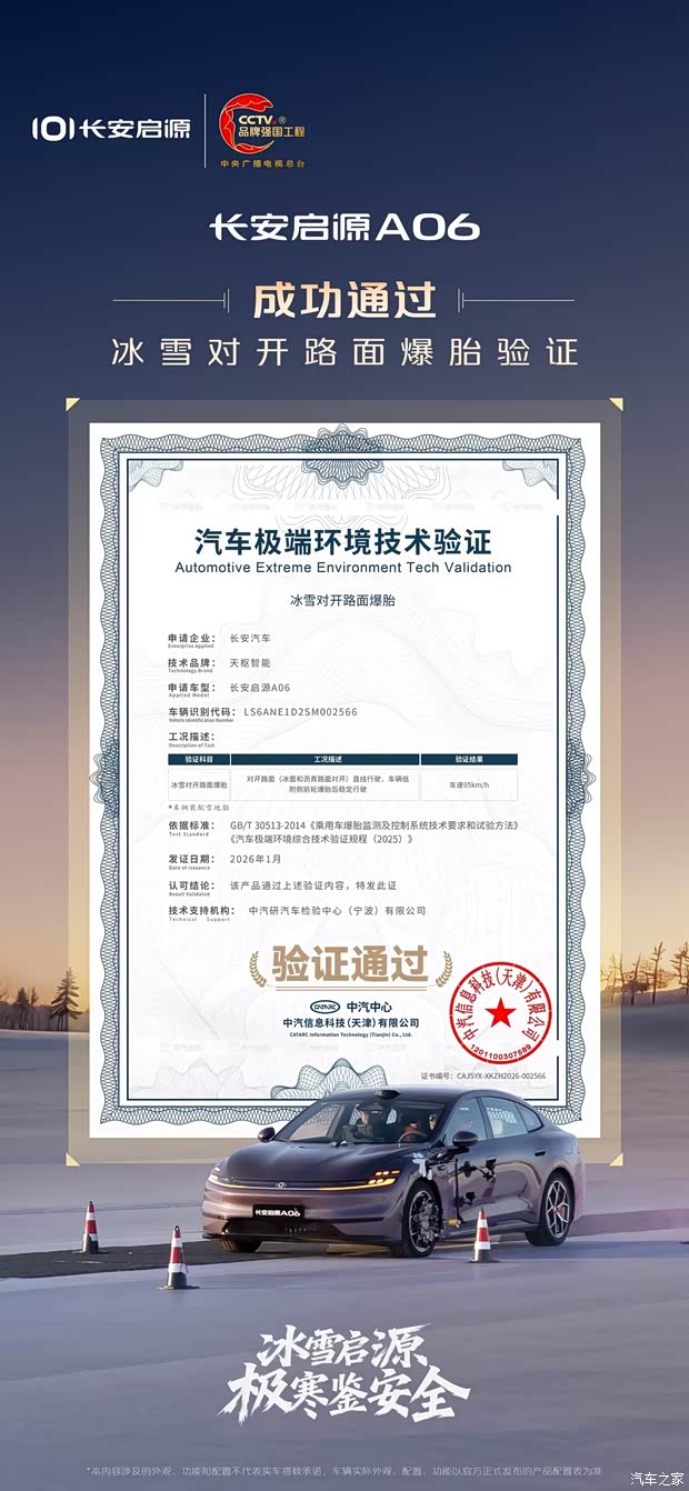 极寒考验,权威认可 长安启源A06 ,成功通过中汽中心汽车极端环境技术验证! 天枢智能赋能,无惧极境考验,构筑全域安全出行防线 #2026长安汽车全球炼车季 #新启源新安全天枢智能 #冰雪启源极寒鉴安全