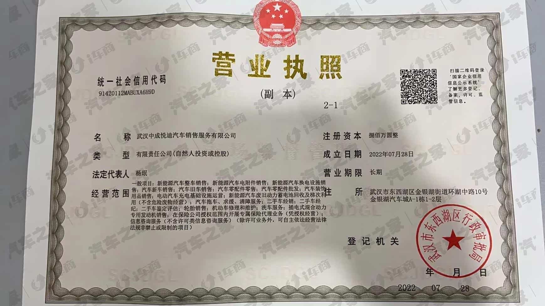 武汉市东西湖区金银湖街道环湖中路10号金银湖汽车城A-1栋1-2层