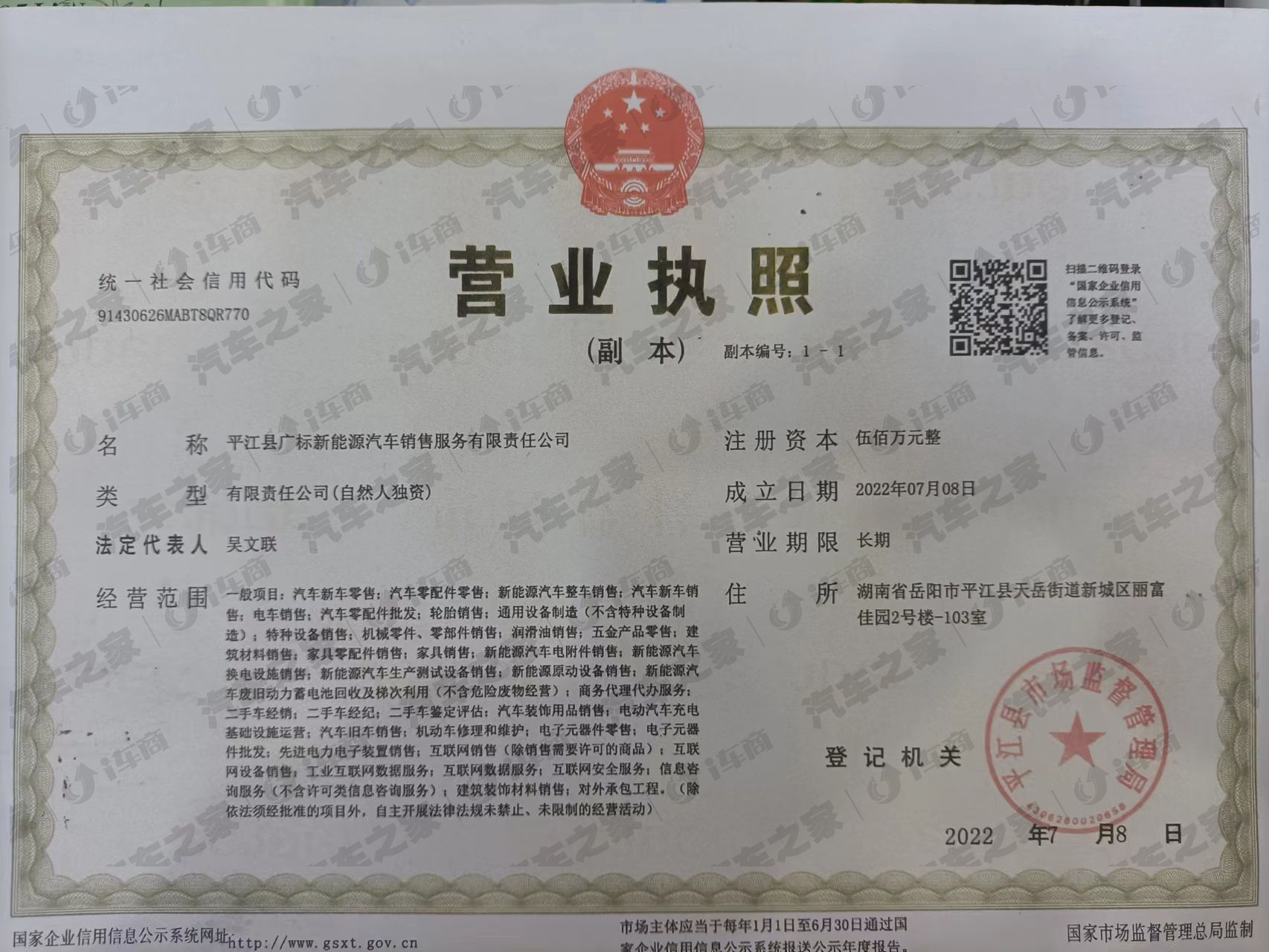 平江县广标新能源汽车销售服务有限责任公司