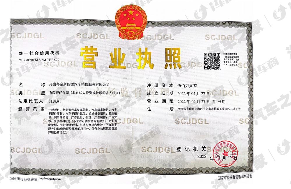 舟山粤宝新能源汽车销售服务有限公司