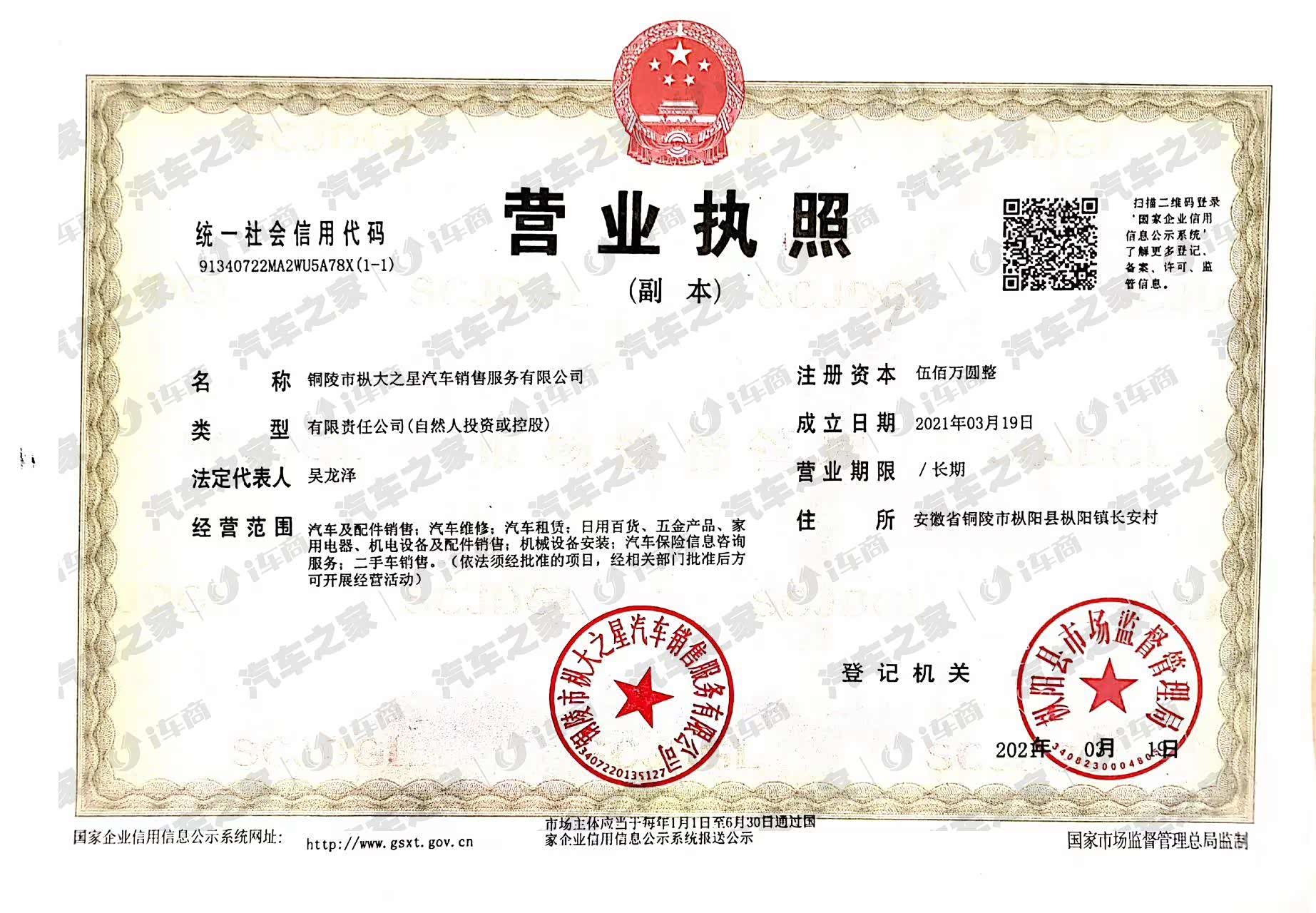 商家地址:铜陵市枞阳县大运汽车城1栋1-6号