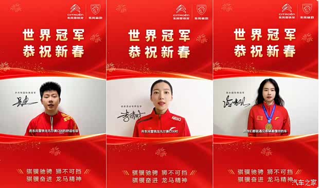 三位冠军,以拼搏精神书写赛场传奇;两款旗舰,以法式魅力定义出行新境。新春之际,东风标致508L与东风雪铁龙凡尔赛C5 X携手冠军天团,致敬每一位在生活中拼搏向前的奋斗者。愿新的一年,您也能如冠军般掌控方向、从容前行,驶向更广阔的天地。东风标致与东风雪铁龙,恭祝全国人民:新春快乐,驾值双升,前路通达!