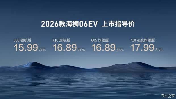比亚迪海洋网旗下高能超享SUV——2026款海狮06EV正式迎来焕新上市,官方指导价为15.99万元-17.99万元。即日起,用户可享实力焕新礼、实力无忧礼、实力闪充礼、实力智联礼多重购车礼遇。作为行业最快达成十万辆成绩的全能神车,此次2026款海狮06EV以领先技术赋能,让广大用户即刻便能体验到比亚迪在补能领域的革命性突破,并以智能、舒享、驾控、颜值、安全五大维度的全面进阶,配合超170项全系硬核标配,再度刷新了主流SUV市场的价值标杆。