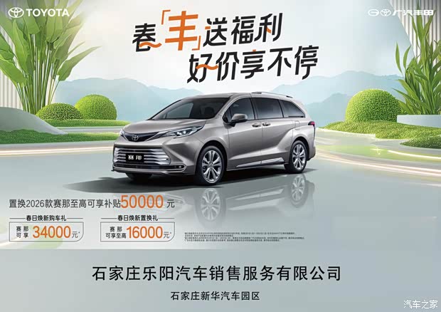 近日,本店内有赛那SIENNA销售,颜色可选,目前购车部分车型可优惠5.00万元,感兴趣的朋友可以到店咨询购买,详情见下表:
