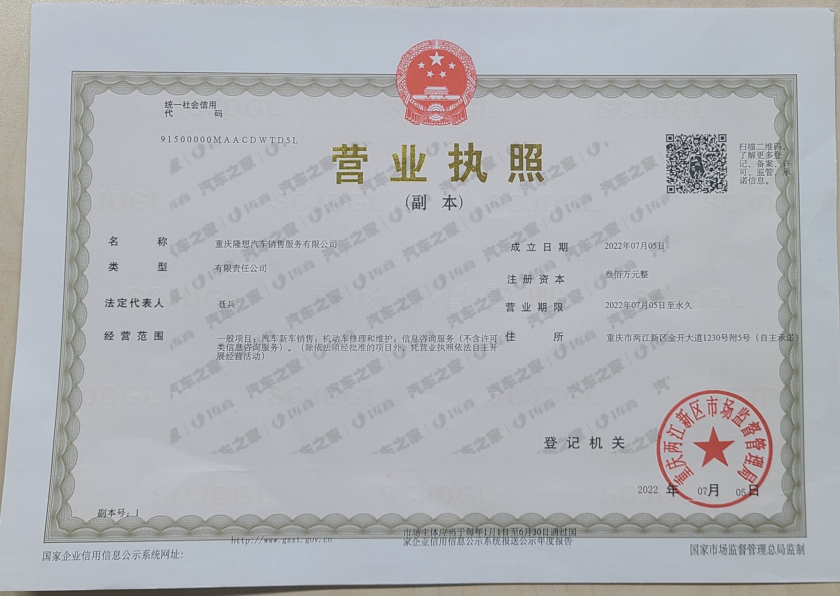 重庆隆想汽车销售服务有限公司