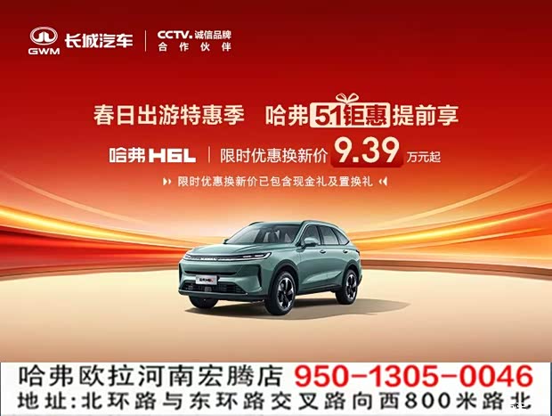 春启换新季、置换再加码,哈弗H6L限时优惠换新价9.39万元起!如果您正计划在这个春天,为家人换一辆更舒适、更安心、更能装下期待的车,不妨前往当地哈弗经销商亲身试驾。让“不负春光”四个字,变成可触摸的现实。