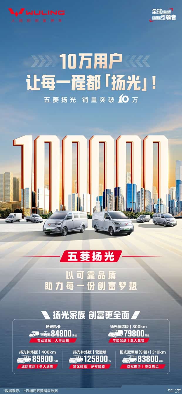 用户让每一程都扬光!五菱扬光销量突破10万台!