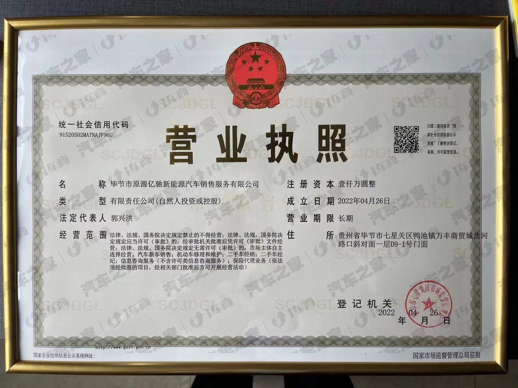 毕节市原源亿驰新能源汽车销售服务有限公司