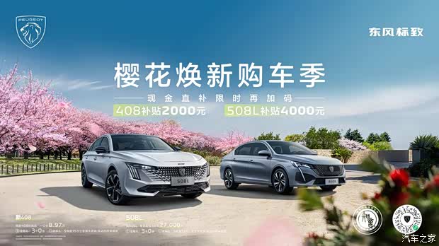 时值春意盎然,樱花绽放之际,东风标致正式启动4月“樱花焕新购车季”车谷消费券补贴活动。4月5日至4月19日期间,消费者购买东风标致新408可享2000元现金补贴,购买东风标致508L则可获得高达4000元现金补贴,限时直补再加码。在这个万物复苏的春季,东风标致以实打实的购车福利与硬核产品力,为用户带来高品质出行新选。